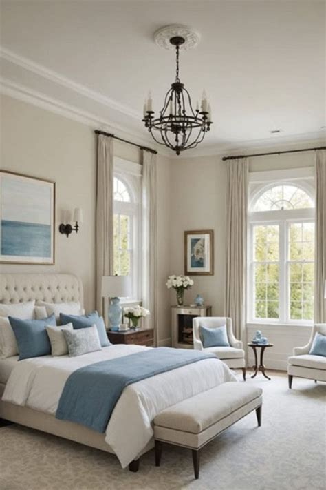 To add a bit of texture to your blue and cream bedroom, consider adding some throw pillows and blankets in different shades of blue and cream. You can also add some curtains that feature a subtle blue pattern. To further enhance the look, you can add some wall hangings or textured rugs in various shades of blue and cream. These small touches will help to create a cozy and inviting atmosphere in the room.